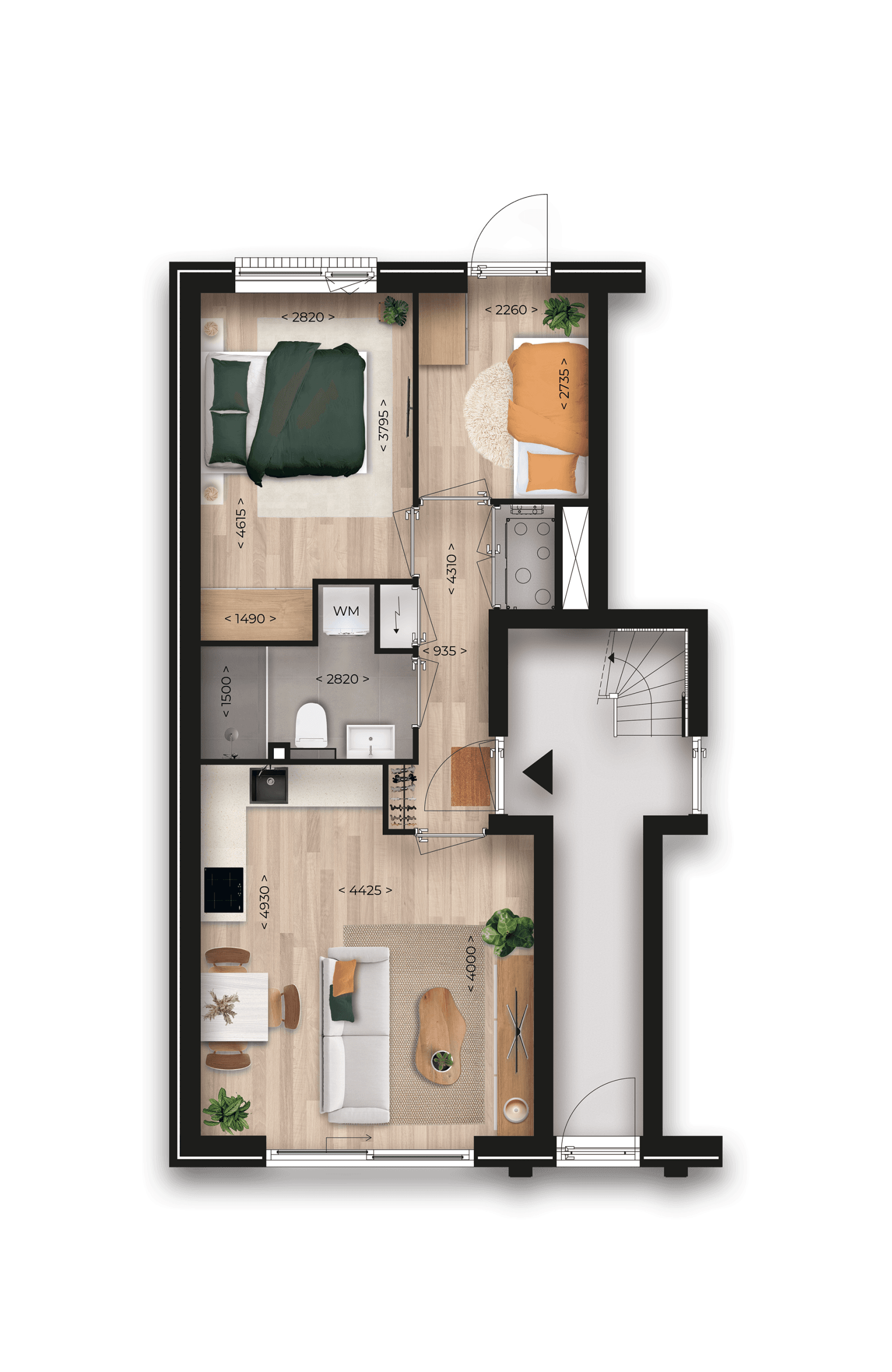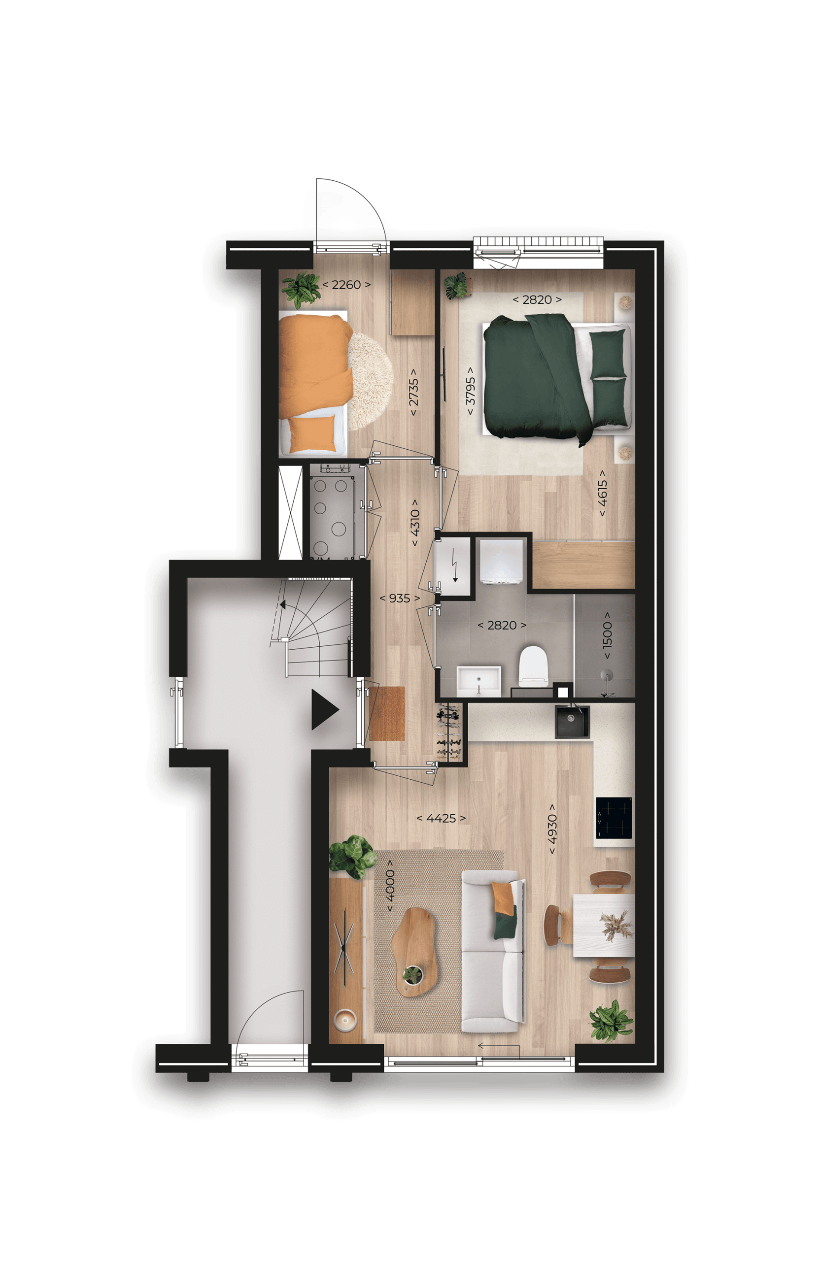 - Balkon op het zuiden, tuin op het noorden en voortuin op het zuiden