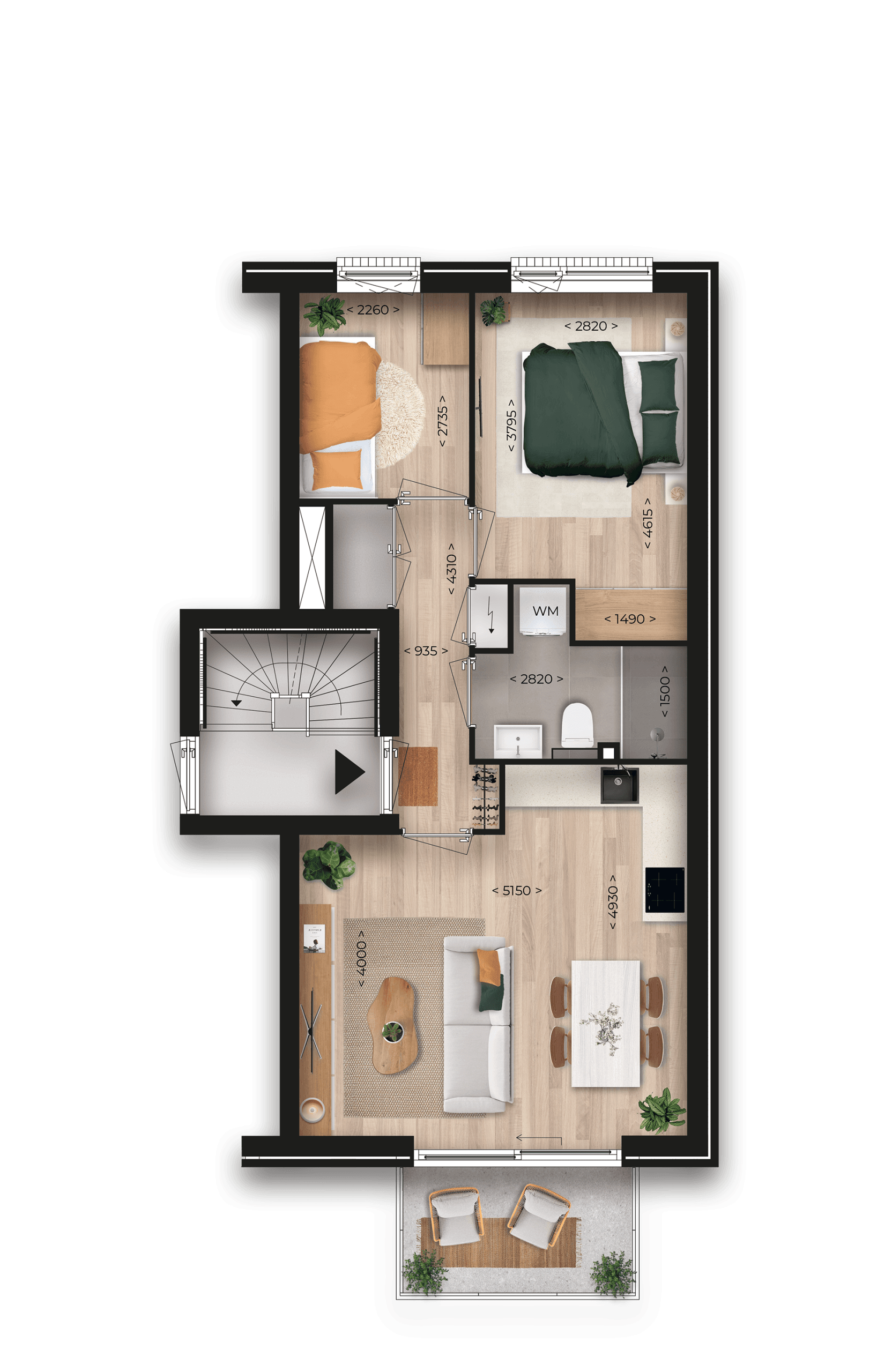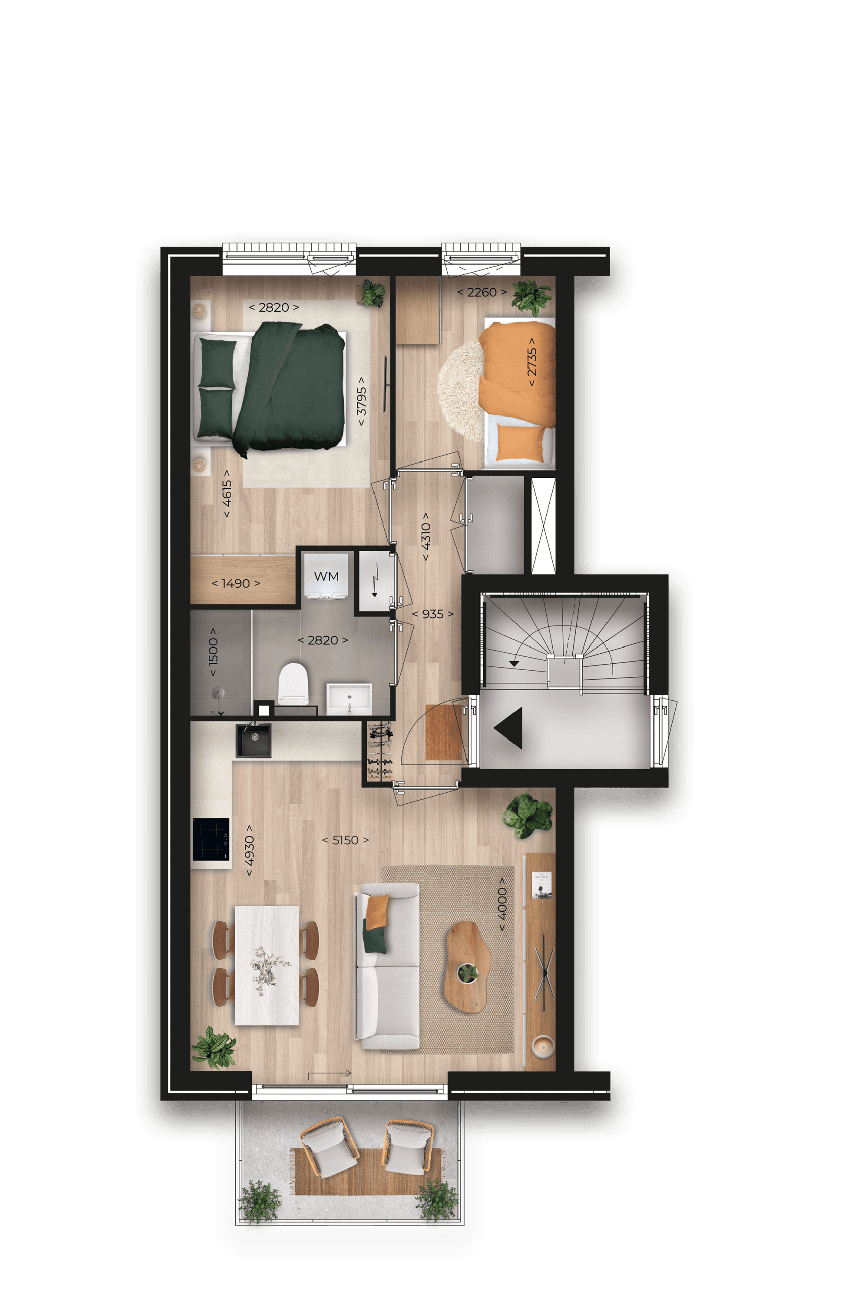 20 m2 tot 21 m2 - Balkon of tuin op het noorden, koel en beschut