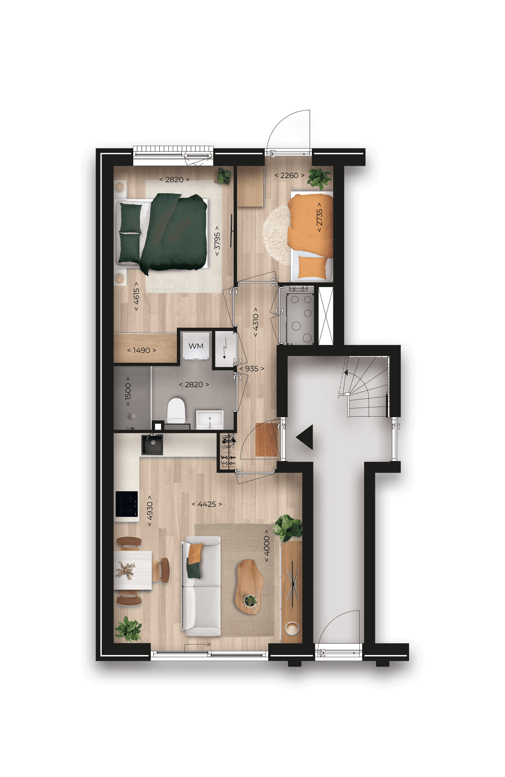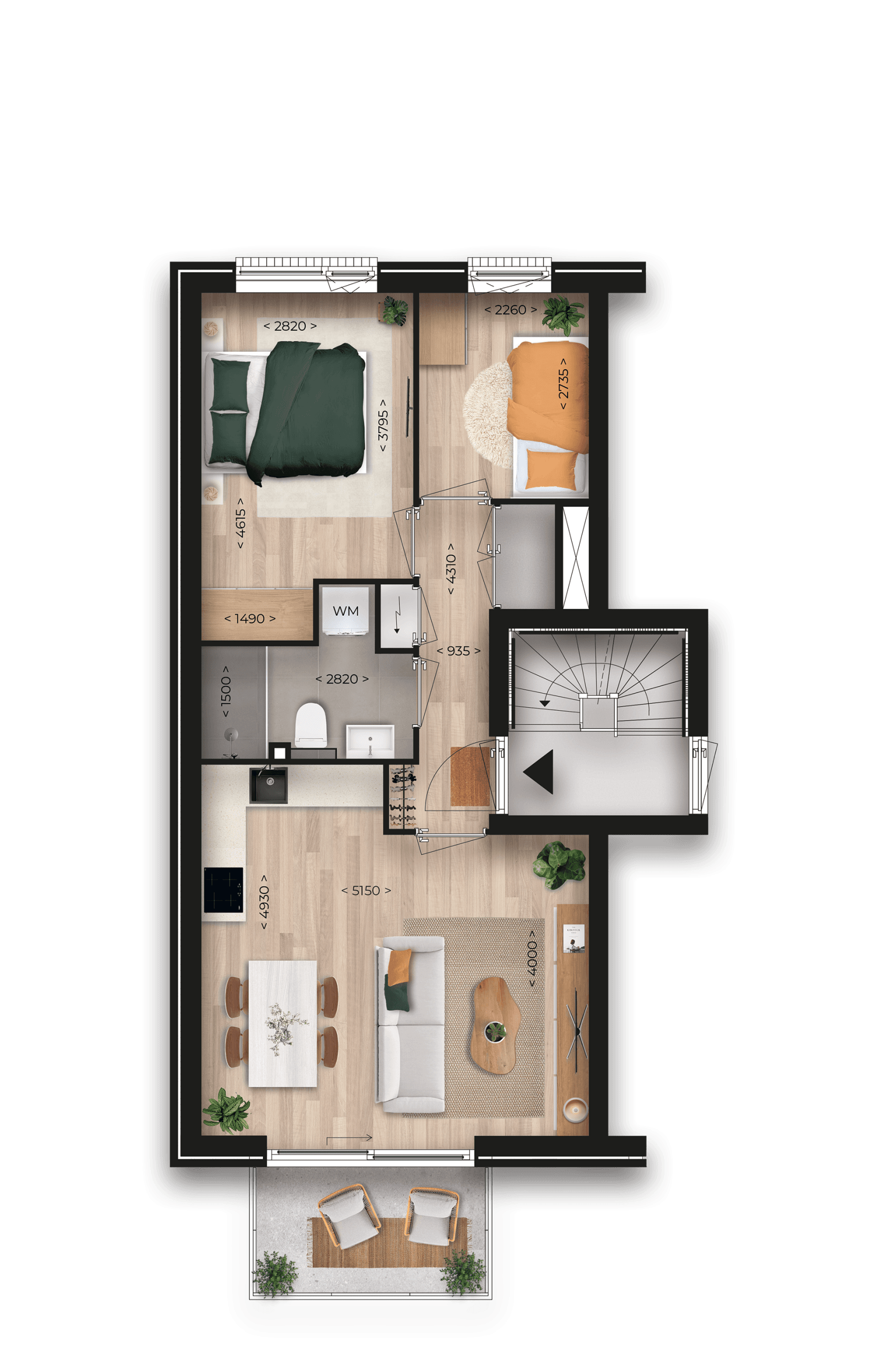- 2 slaapkamers